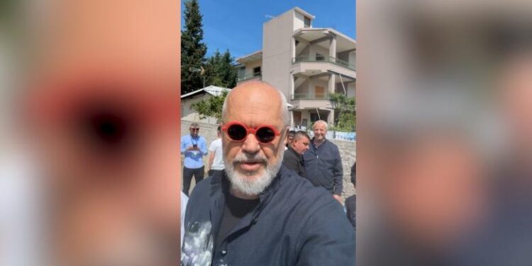 Rama shfaqet krah bashkëshortes Linda Rama dhe disa banorëve të tjerë të Surrelit, ndërsa me batuta shton se është me katunarët e tij.