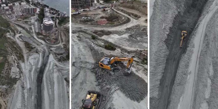 Pamjet tregojnë ecurinë e punimeve në zonën kodrinore të qytetit bregdetar.
