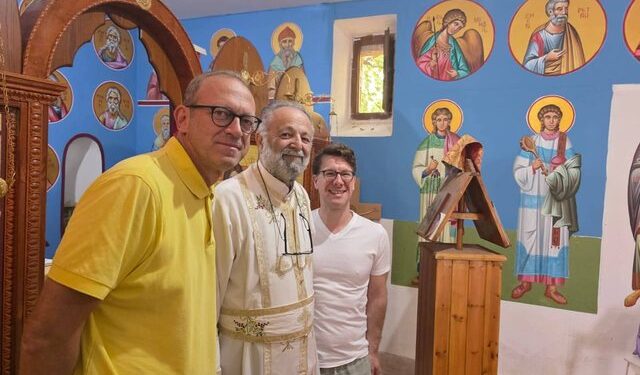 Prifti ortodoks At Romanoi (Robert Tralo) dhe gruaja e tij Jolanda nuk reaguan me habi përballë kësaj pamjeje, por vazhduan me leximet dhe këndimet e tyre nga librat fetarë. Mesha pjesërisht i ngjante një koncerti, në fund prifti bëri edhe shqiponjën dhe për pak u duk sikur kishte braktisur një ndeshje futbolli me Granit Xhakën dhe Gjerdan Shaqirin. Feja mund të jetë edhe gazmore, jo vetëm paralajmërim e qortim.