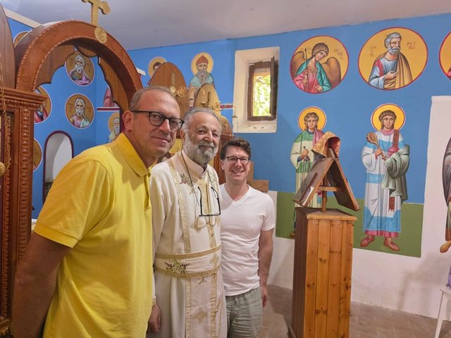 Prifti ortodoks At Romanoi (Robert Tralo) dhe gruaja e tij Jolanda nuk reaguan me habi përballë kësaj pamjeje, por vazhduan me leximet dhe këndimet e tyre nga librat fetarë. Mesha pjesërisht i ngjante një koncerti, në fund prifti bëri edhe shqiponjën dhe për pak u duk sikur kishte braktisur një ndeshje futbolli me Granit Xhakën dhe Gjerdan Shaqirin. Feja mund të jetë edhe gazmore, jo vetëm paralajmërim e qortim.