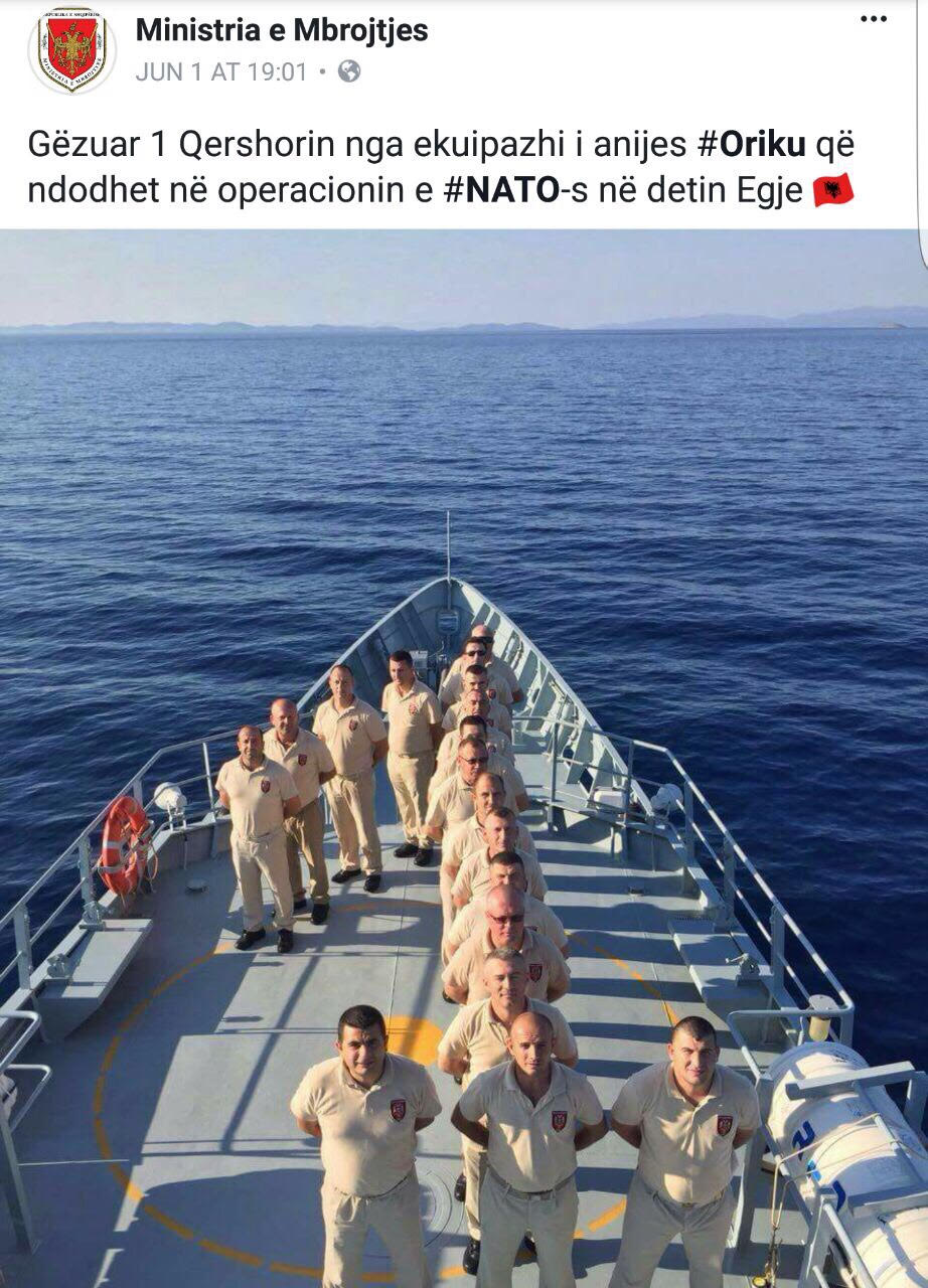 Shtabi shkruan se vëren me keqardhje keqpërdorimin e një fotoje të anëtarëve të ekuipazhit të anijes Oriku, që ndodhet në mision jashtë atdheut në detin Egje.