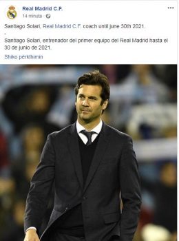 Bosi i Real Madridit, Florentino Perez më në fund ka vendosur për t’i dhënë besimin teknikut të ri në krye të Los Blancos. Santiago Solari do të jetë zyrtarisht trajneri i Realit të Madridit deri në vitin 2021. Ai ka kaluar me sukses provën dhe pas katër ndeshjes ka marrë zyrtarisht postin drejtues duke u përshëndetur me atë të përkohshmit.