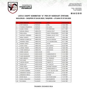 Trajneri i Kombëtares shqiptare të futbollit, Edi Reja ka publikuar listën e lojtarëve që ka ftuar për dy ndeshjet e radhës për Ligën e Kombeve, 4 shtator përballë Bjellorusisë dhe 3 ditë më pas me Lituaninë.