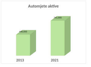 Me rritjen e numrit të automjeteve në qarkullim, rritet probabiliteti i vdekjeve/plagosjeve të rënda nga aksidentet rrugore (kur kushtet e tjera mbeten njësoj). Në tetë vitet e fundit, numri i automjeteve aktive në Shqipëri ka shënuar një rritje dramatike prej 66% (nga 446 mijë më 2013, në 741 mijë më 2021 – shihni grafikun shoqërues).