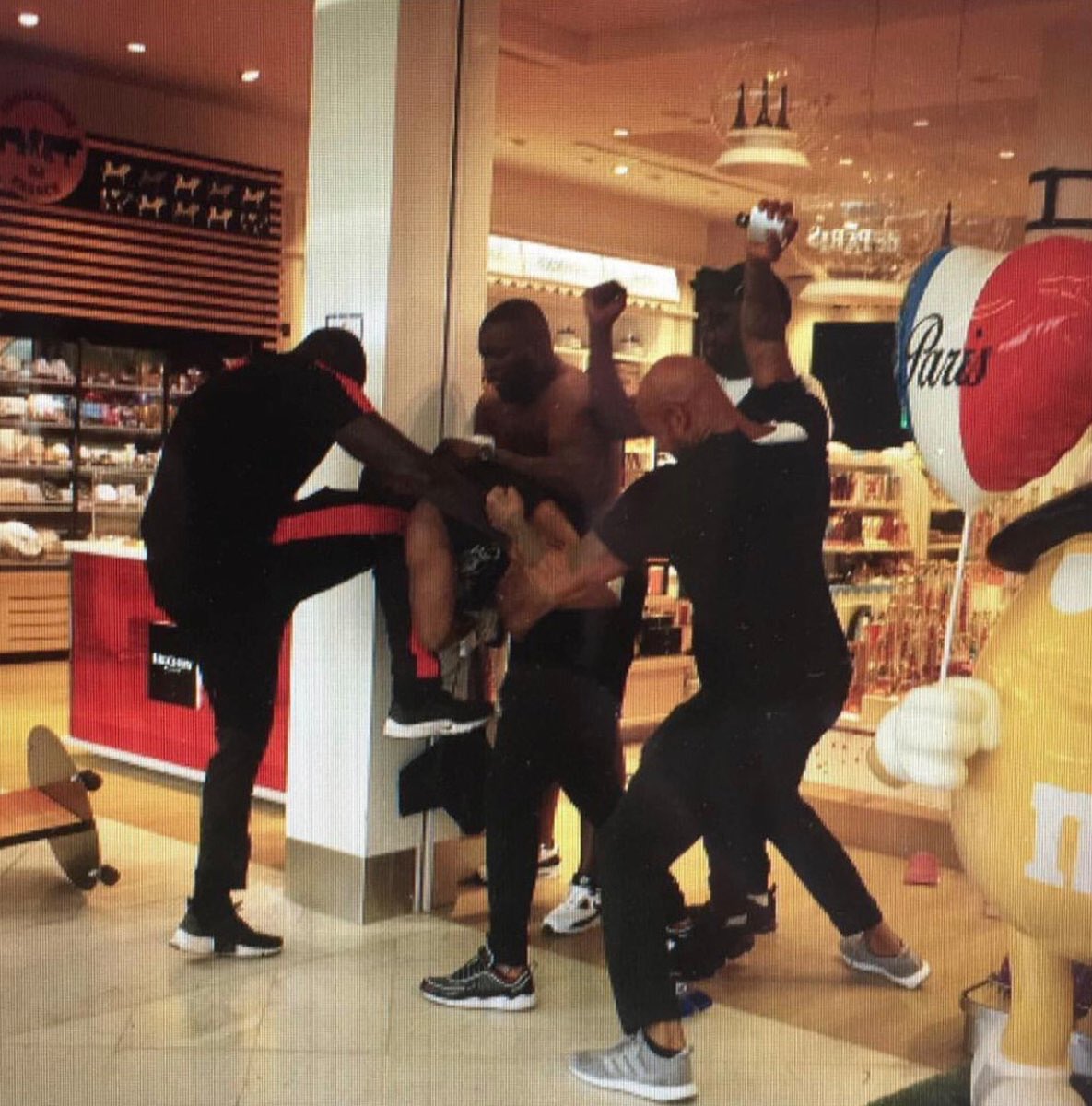 Elie Yaffa, i cili njihet si Booba, e Armand Gnakouri i cili njihet si Kaaris, së bashku me shoqërinë e tyre janë përleshur në mënyrë brutale e duke i hedhur njëri tjetrit gjëra ngado që gjenin, transmeton Koha.net.