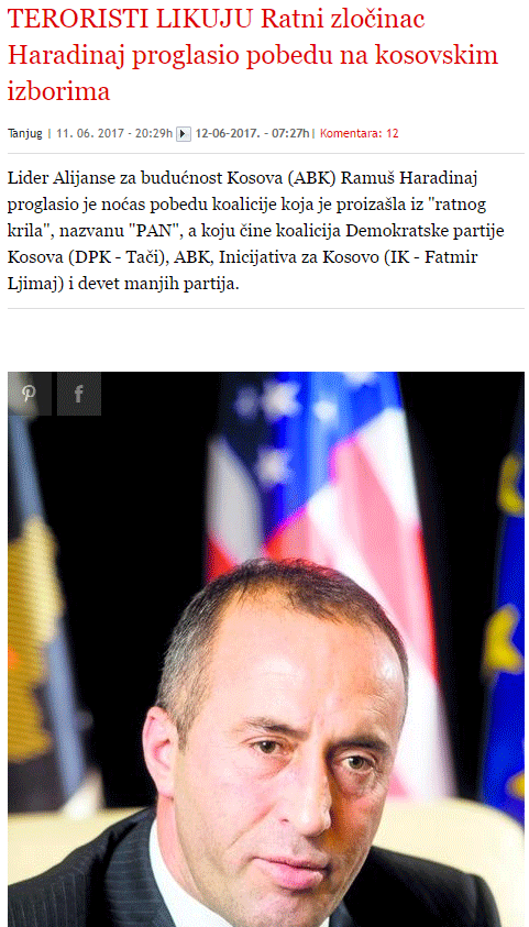 Duke mos e pasur dëshirën e një fitoreje të tillë, “Blici” serb thotë se “Terroristi i luftës” fiton zgjedhjet në Kosovë, duke nënkuptuar Ramush Haradinajn.