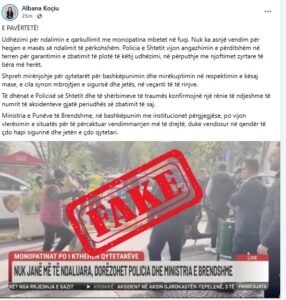 Në një postim në rrjetet sociale, Koçiu përgënjeshtron lajmet dhe thekson se udhëzimi për ndalimin e përkohshëm të monopatinave vijon të jetë në fuqi dhe se nuk ka asnjë vendim për shfuqizimin e kësaj mase. Sipas saj, Policia e Shtetit vazhdon kontrollet në terren për zbatimin e plotë të udhëzimit, në përputhje me njoftimet zyrtare të bëra më herët.