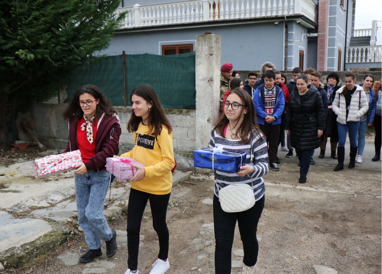 Me nismën e tyre, nxënësit kishin përgatitur dhurata për 120 fëmijë të zonës, të cilat shfaqën dëshirën për t’i shpërndarë bashkë me mësuesit e tyre, gjatë vizitës së ministres Xhaçka pranë familjeve të strehuara në çadra në këtë zonë rurale.