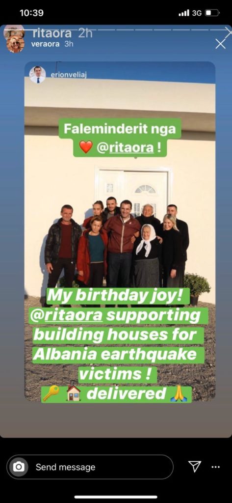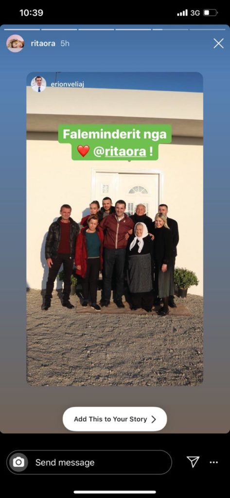 Një ditë pasi kryebashkiaku i Tiranës Erion Veliaj u dorëzoi atyre çelësat e banesës së re, Rita Ora nuk i ka kursyer falenderimet.