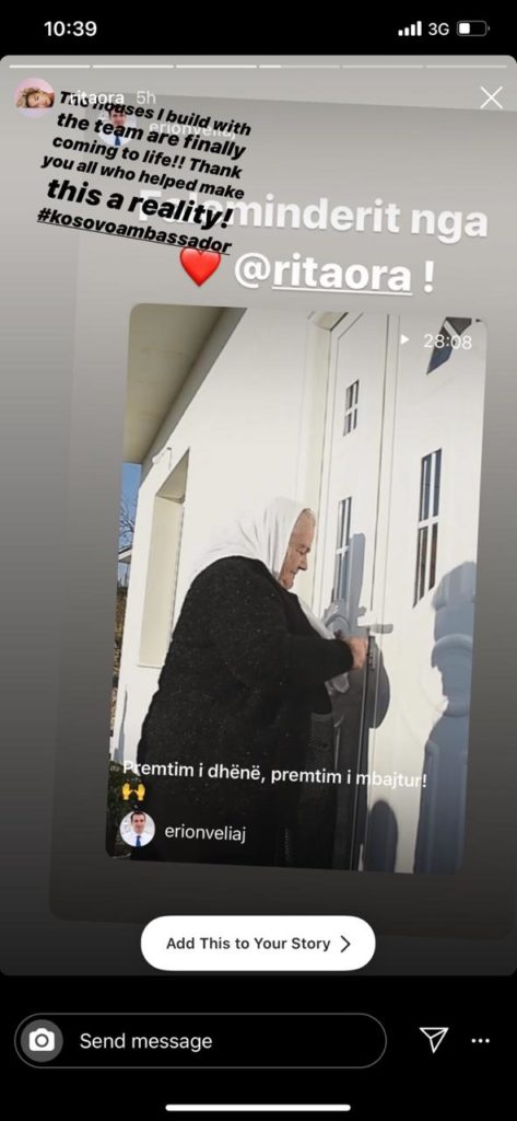 “Shtëpia e rindërtuar është gati. Faleminderit që ndihmuat që kjo gjë të bëhej realitet”, shkruan këngëtarja Rita Ora. /e.s/