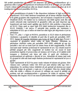 “Gjatë veprimtarisë së KLD ka pasur vende vakante të krijuara në gjykata. Këto vakanca nuk i përkasin vetëm vitit 2018, por janë mbartur edhe nga vitet e mëparshme. Ky problem krijon vështirësi në çdo gjykatë që ekziston, por mund të krijojë kolaps në gjykatat e vogla me 4-5 gjyqtarë. Vëmendja dhe reagimi i KLGJ me masa të përkohshme është i menjëhershëm”, shkruhet në raport.