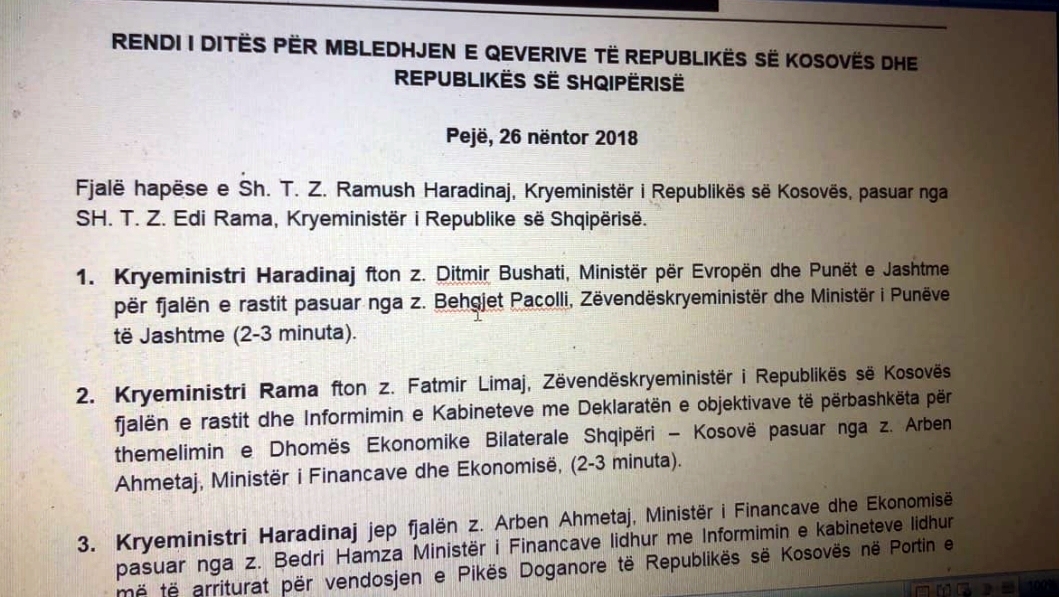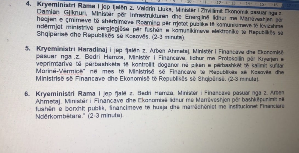 10:30 Fillimi i mbledhjes së përbashkët të Qeverisë së Republikës së Kosovës dhe Qeverisë së Republikës së Shqipërisë.