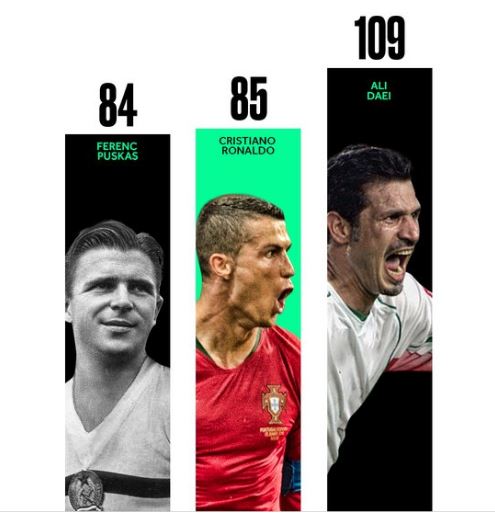 Ky ishte goli i tij i 85-të, duke u ngjitur në vendin e dytë të golashënuesve më të mirë të një kombëtareje, duke lënë pas Ferenc Puskas dhe duke shenjëstruar rekordin e iranianit, Ali Daei që mban vendin e parë në kuotën e 105 rrjetave. /a.ç