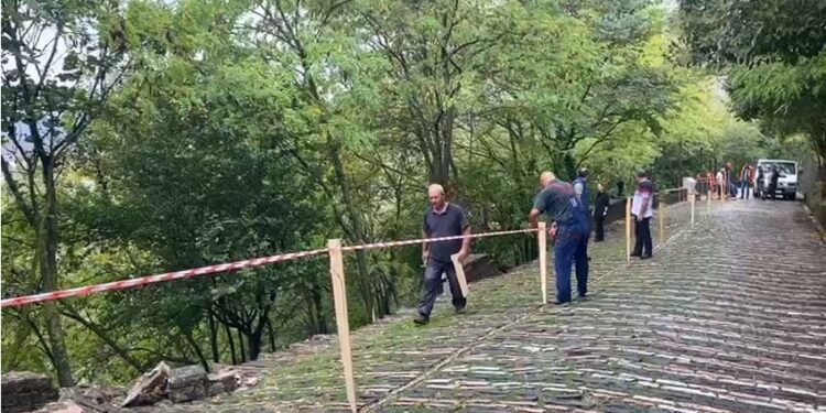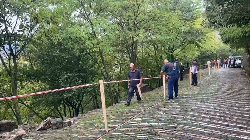 Një pjesë e segmentit që të çon për në kalanë e qytetit të Gjirokastrës ka pësuar rrëshqitje, duke bllokuar edhe qarkullimin e automjeteve.