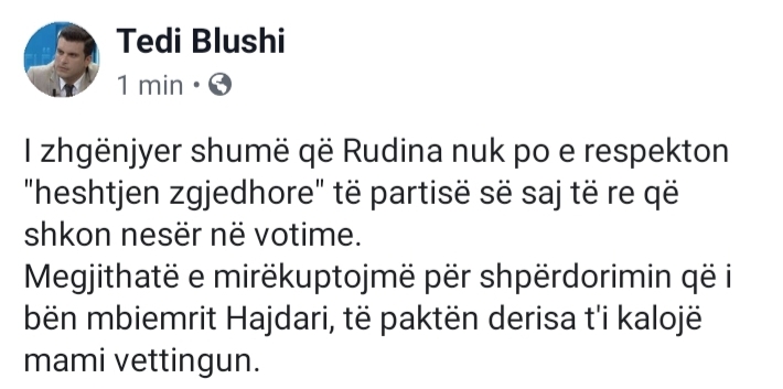 I zhgënjyer shumë që Rudina nuk po e respekton “heshtjen zgjedhore” të partisë së saj të re që shkon nesër në votime.