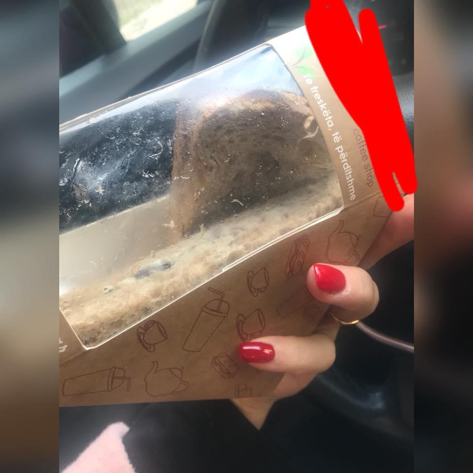 “Ja çfarë me ndodhi sot (dje) rreth orës 15.00 në një nga kafenetë zinxhir të famshme të Tiranes e që edhe në paketim pretendon për ushqim të freskët! S’po e bëj publik emrin e kompanisë, sepse ata e dinë cilët janë. Por nuk mund te mos i ndaja me ju këto pamje, sepse edhe tani që e kujtoj më vone revoltohem nga fillimi. SKANDALOZE!!!