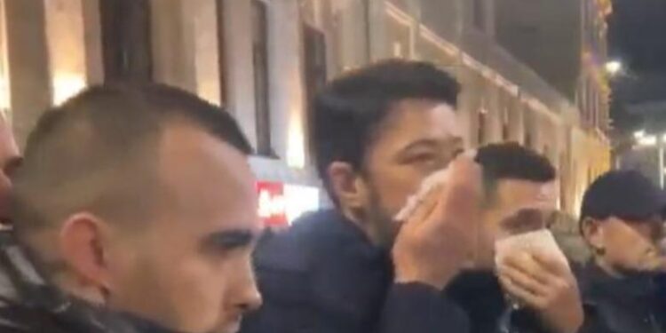 Pranë shkëlzen Berishës qëndron deputeti i PD-së, Arjan Ndoja, i cili dëgjohet të thotë se tani e ka marrë në dorë populli.
