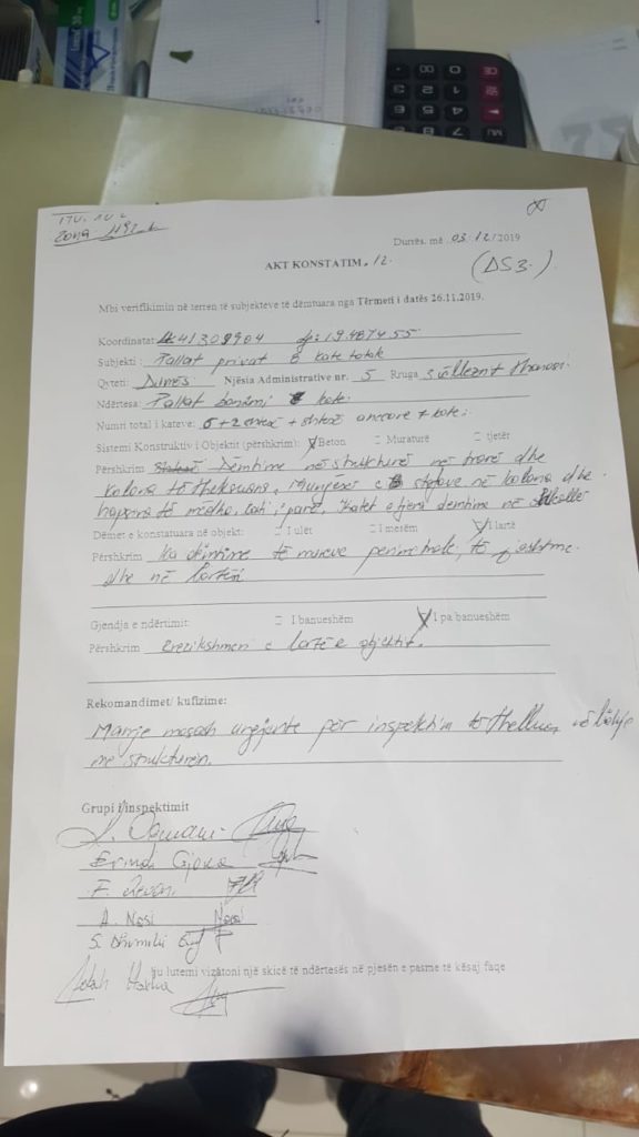 U interesuam dhe te bashkia në Durrës dhe morëm vetëm akt konstatimin se akt ekspertize nuk ka. Theksoj që pallatin e kanë rrethuar që ditën e parë.