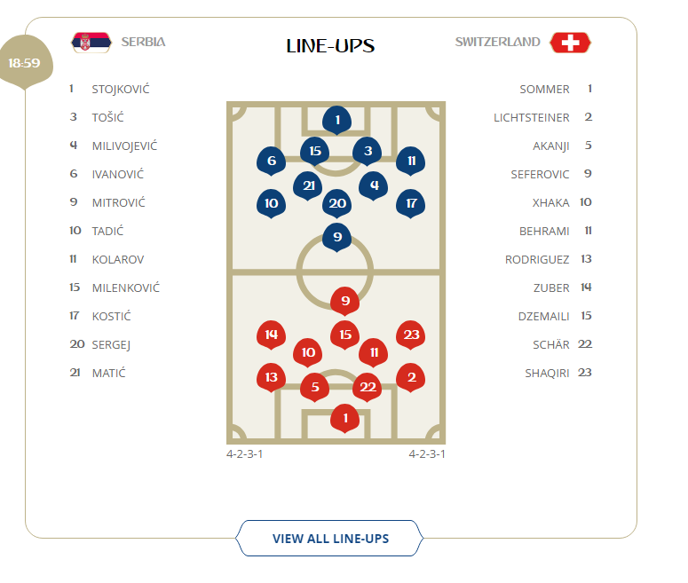 Në orën 20:00 do të luhet ndeshja e vlefshme për Grupin E të Botërorit mes Serbisë dhe Zvicrës, e cila pritet të dhurojë emisione të forta edhe në vendin tonë për shkaqe që tani dihen. Duke iu referuar formacionit 4 nga 5 shqiptarë do të jenë në fushë për Zvicrën, e cila sonte do tentojë fitoren për të kaluar fazën e grupeve.