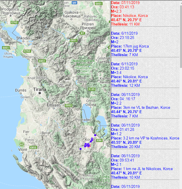 Lëkundje të tjera tërmeti, të gjitha me epiqendër në Korçë. Janë gjashtë lëkundje të regjistruara nga Instituti i Gjeoshkencave Ujit dhe Mjedisit nga mëngjesi i së mërkurës deri mëngjesin e sotëm. bëhet fjalë për lëkundje me magnitudë të vogël, më e fundit e shkallës 2.3.