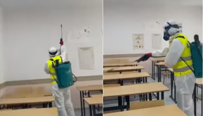 “Mirëmëngjesi nga shkolla ‘Aleks Buda’, në Njësinë 11. Kolegët pas lyerjeve e mirëmbajtjes, kanë nisur dezinfektimin në çdo shkollë!”, shkruan Veliaj.