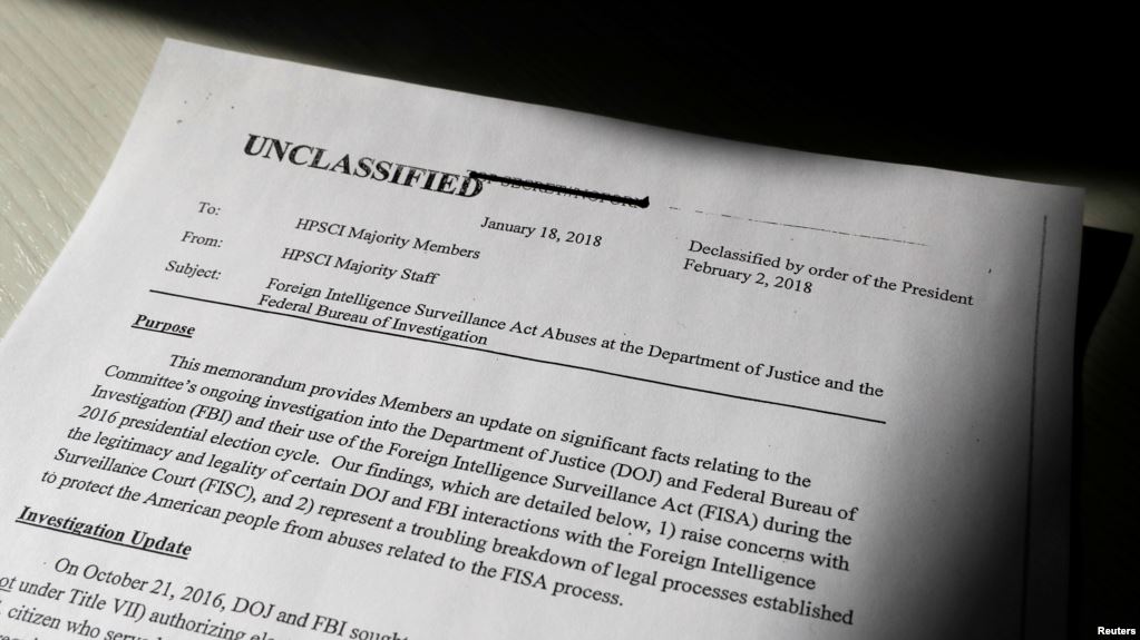 Publikimi i dokumentit e intensifikon luftën politike mes Presidentit Trump dhe aleatëve të tij republikanë nga njëra anë dhe demokratëve dhe zyrtarëve të lartë të FBI-së nga ana tjetër lidhur me faktin nëse hetimi për ndërhyrjen ruse në zgjedhjet presidenciale ishte ndikuar nga njëanshmëria politike e hetuesve.