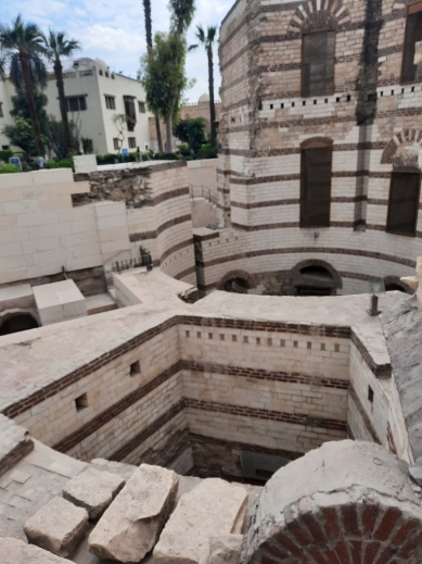 Pak më tutje jashtë ambientit të kishës ndodhej një sinagogë hebreje. Ecëm nëpër hapësirat dhe dekoret e krijuar nga bashkësia izraelite e Kajros.