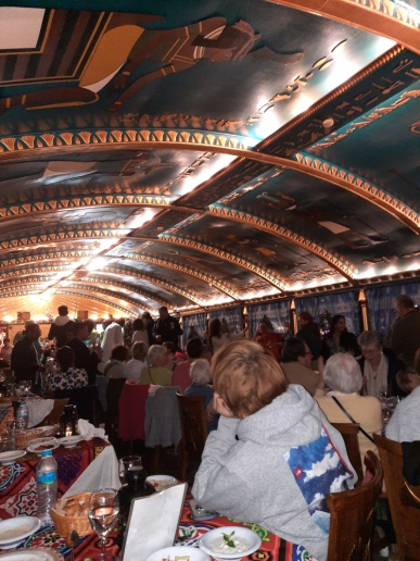 Sapo arritëm në Kajro na thirrëm në hollin e hotelit për të udhëtuar me traget ku do zhvillohej një festë në mbrëmje mbi lumin Nil . Guidat e sjellshëm , na pritën me temena në fillim dhe kështu e besuam më shumë që ishim jo thjesht në një hotel , por në pallatin mbretëror të një familjeje shqiptarësh të njohur si mbreti Mehmet Ali dhe trashëgimtarët e tij , të cilin e kishin privatizuar të zotët e hotelit.