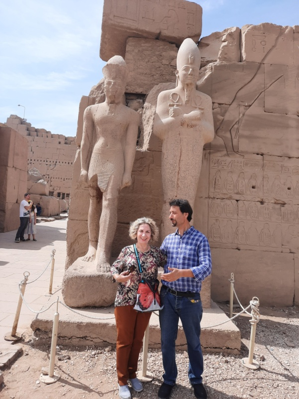 Të nesërmen në vijim të eksplorimit me Ahmetin guidën egjiptiane pak me humor e batuta si “mos më fol pa pirë një kafe” që në mëngjes filluam programin e shëtitjes së vendeve arkeologjike nga tempulli i njohur i Karnakut. Ky tempull na intrigoi me historinë e faraonëve si Ramsesi dhe mbretëresha e tij Nefertari , cjepërit gjigandë të ulur në të dy anët si krijesa mitike , por më shumë piktogramat që stolisnin kolonat e larta e të gjera.