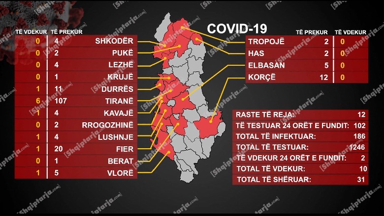 67-vjeçari është viktima e dhjetë e prekur nga COVID-19 në Shqipëri.