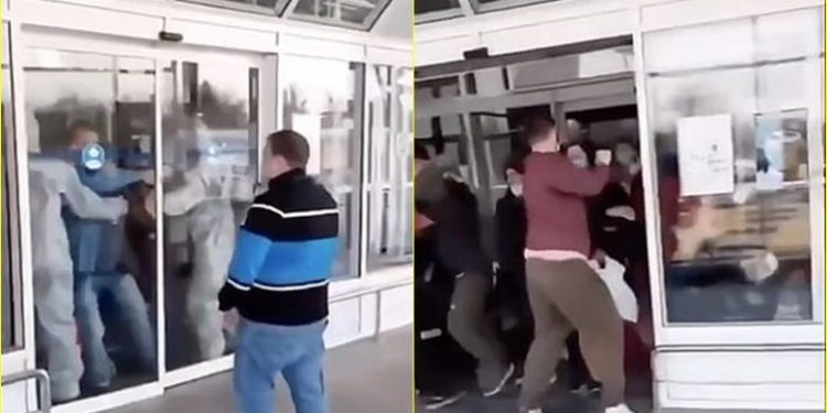 Ndërkohë pamjet e publikuara tregojnë ata duke dashur të kalojnë me dhunë përmes oficerëve të kontrollit.