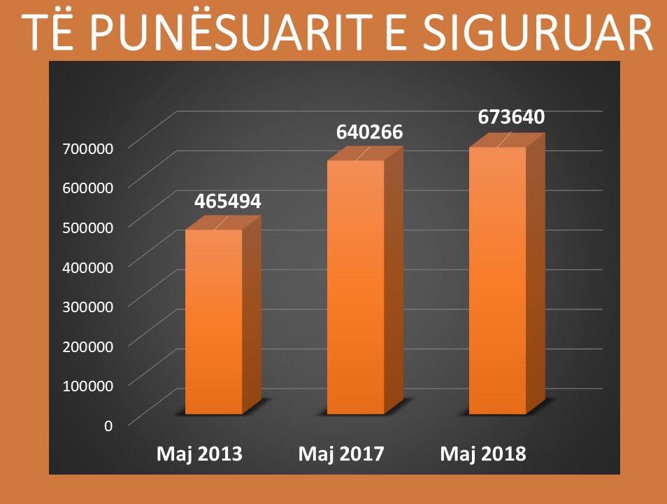 Bashke me urimin miremengjes dhe nje dite te mbare, kryeministri Rama ka ndare me ndjekesit e tij ne FB disa shifra lidhur me numrin e punetoreve te siguruar. Ka zgjedhur muajin maj, te vitit 2013, ate te 2017 dhe ne fund majin e ketij viti.
