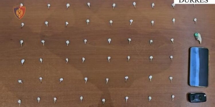 Policia e Durrësit ka vënë në pranga një 36-vjeçar i cili shiste kokainë në doza të vogla. Pas disa javësh hetime, operacioni i koduar “Midnight” vuri në pranga shtetasin me iniciale E. K., 36 vjeç, banues në Durrës.