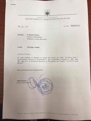 Pas rastit të Sekretares së Përgjithshme të Ministrisë së Drejtësisë, një tjetër zyrtar i këtij niveli është larguar por sërish urdhri është refuzuar nga Departamenti i Administratës Publike.