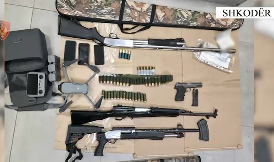 “Gjatë kontrolleve, në fshatin Rragam, shërbimet e Policisë kanë konstatuar 5 shtetas që kryenin gjueti të paligjshme. Gjatë kontrollit në automjetin me të cilin qarkullonin këta shtetas, u gjetën: 1 armë zjarri pistoletë, 1 armë zjarri pushkë, 1 armë gjahu teke, 1 armë gjahu shotgan, municion luftarak, 1 dron dhe 1 shpend i vrarë, të cilat u sekuestruan në cilësinë e provës materiale“, thuhet në njoftimin e bërë publik për mediat.