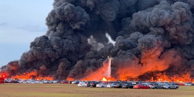 Një zjarr i fuqishëm ka shpërthyer pranë një aeroporti në Florida duke djegur më shumë se 3500 makina që jepeshin me qira.