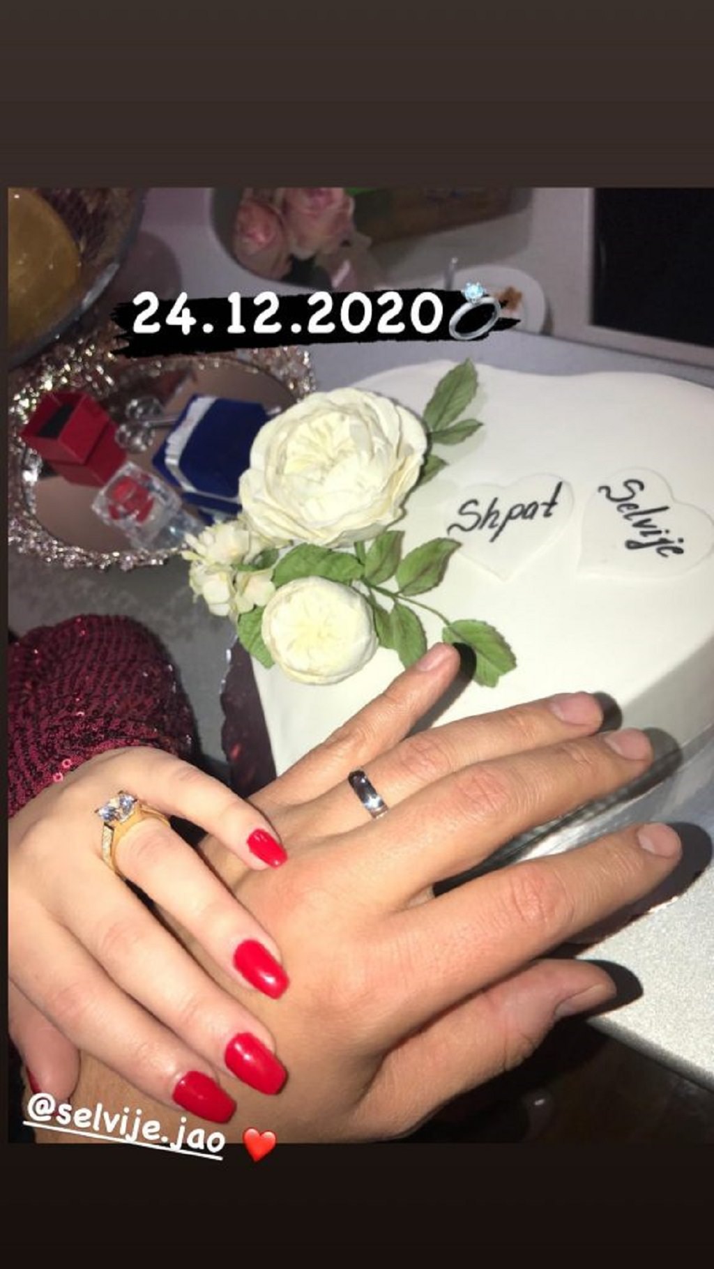 “24 dhjetor 2020”, ka shkruar këngëtari sipër fotove duke zbuluar se ai tashmë është fejuar, duke zyrtarizuar kështu lidhjen me Selvijen, të cilën ai e përkëdhel me emrin Serlva.
