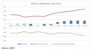 Në tremujorin e parë 2019, bilanci ishte pozitiv prej 76 milionë euro. Por, për herë të parë që nga viti 2014, bilanci është ngushtuar lehtë (me rreth 2 mln euro), për shkak të rritjes së shpenzimeve të shqiptarëve jashtë me ritme më të larta se të të huajve në vendin tonë.(Monitor)l.m