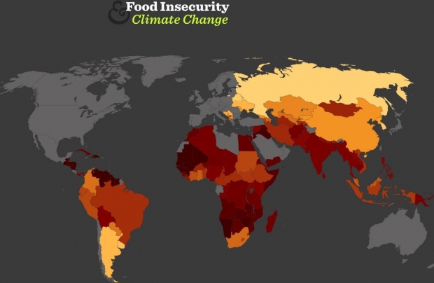 (Harta me vendet e rrezikuara nga furnizimi me ushqim në vitit 2050, mes të cilëve është edhe Shqipëria)
