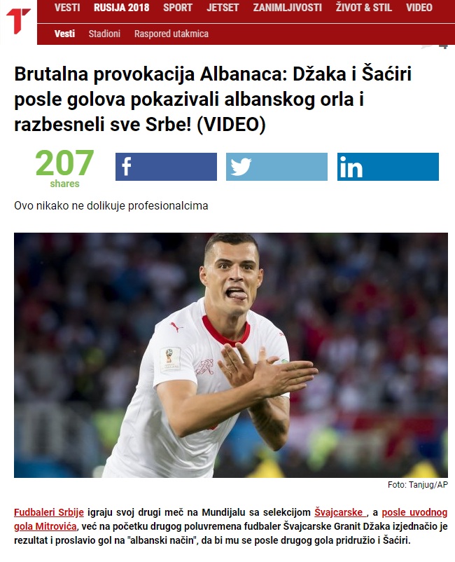 Por i menjëhershëm ishte edhe reagimi i mediave në Serbi që nuk nguruan ta vlerësonin festimin e golave si provokim, madje kërkuan edhe reagimin e menjëhershëm të FIFA-s.