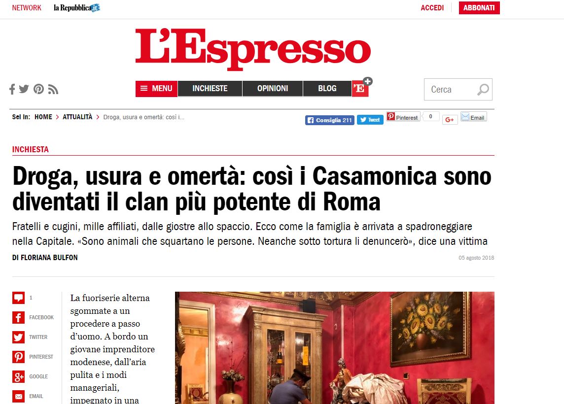 “Drogë, fajde dhe omerta: kështu Casamonica u bënë klani më i fuqishëm në Romë”. Ky është titulli i një artikulli të publikuar këtë të diel nga italiania “L’Espresso”. Në shkrim, tregohet se si “Casamonica” arriti të kthehej në organizatën kriminale me të fuqishme, që tashmë kontrollon kryeqytetin italian Romë.