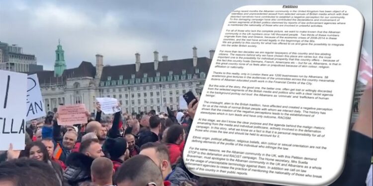 Përmes një peticioni, me një gjuhë të fortë dhe krenare, shqiptarë rezidentë në Mbretërinë e Bashkuar kanë kërkuar ndalimin e menjëhershëm të fushatës së shpifjeve raciste ndaj tyre. Ata kanë thënë se kjo është raciste dhe po krijon një perceptim të gabuar për të gjithë komunitetin.