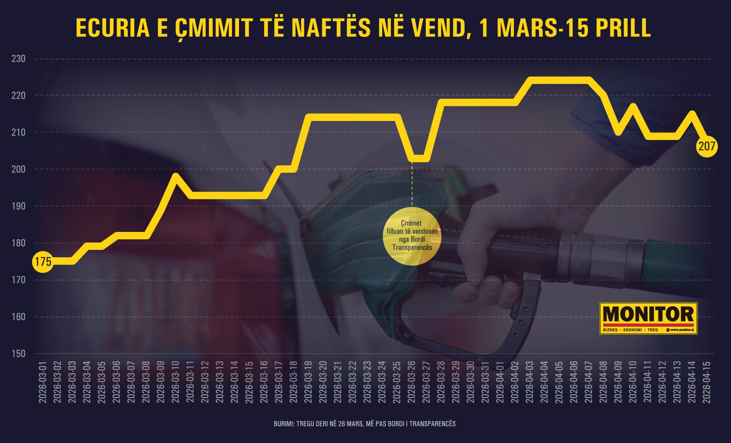 Në 17 mars, nafta kërceu në 200 lekë dhe vetëm dy ditë më pas arriti në 214 lekë. Ndonëse qeveria riaktivizoi Bordin e Transparencës, çmimet u ulën vetëm për dy ditë në 203 lekë, për të kërcyes në fund të marsit në 218 lekë. Mesatarisht, një litër naftë kushtoi 200 lekë në mars, ose 14% më shumë se më parë.