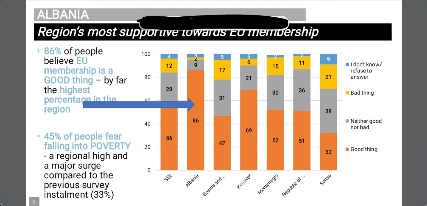 Shqiptarët ndryshe nga serbët, maqedonasit, boshnjakët dhe malazezët përgjigjen se “është diçka e mirë”. 86% e shqiptarëve mendojnë kështu, ndërsa pas tyre vijnë qytetarët e Kosovës me 69%, ata të Malit të Zi me 51%, të Maqedonisë së Veriut me 51%, të Bosnje-Hercegovinës me 47% dhe Serbisë me 32%.