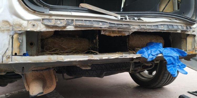 Shqiptari u ndalua në zonën e Kompoti në Arte, pasi në makinën e tij kishte fshehur 59 kilogramë marijuanë.