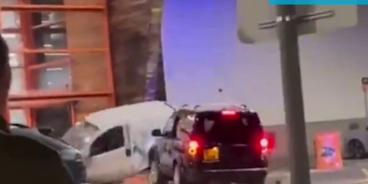 Dy personat brenda Peugot-it u larguan me vrap nga parkingu. Një mjet tjetër është dëmtuar, disa shtylla dhe xhami i dyqanit është krisur për shkak të goditjeve.