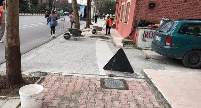 Pas ndërhyrjes në shumë prej akseve kryesore të Tiranës, punonjësit e terrenit sot janë ndalur për rregullimin e rampave në trotuar në Bulevardin “Zhan D’Ark”.