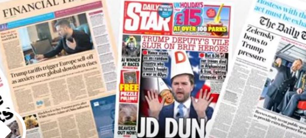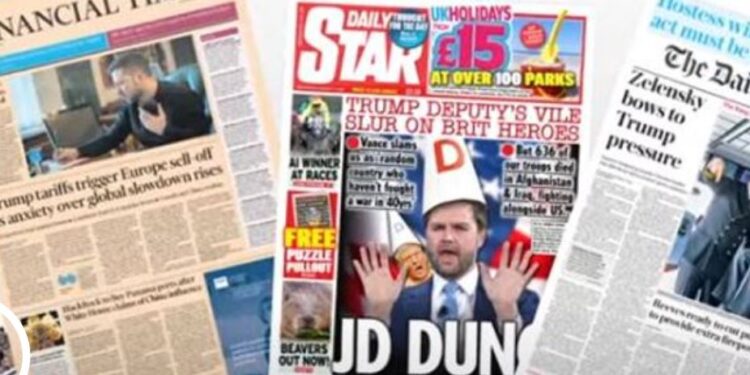 Ndërkohë gazeta Metro thotë se komentet e JD Vance që godasin efektivitetin e një force të mundshme paqeruajtëse në Ukrainë kanë zemëruar veteranët dhe deputetët.