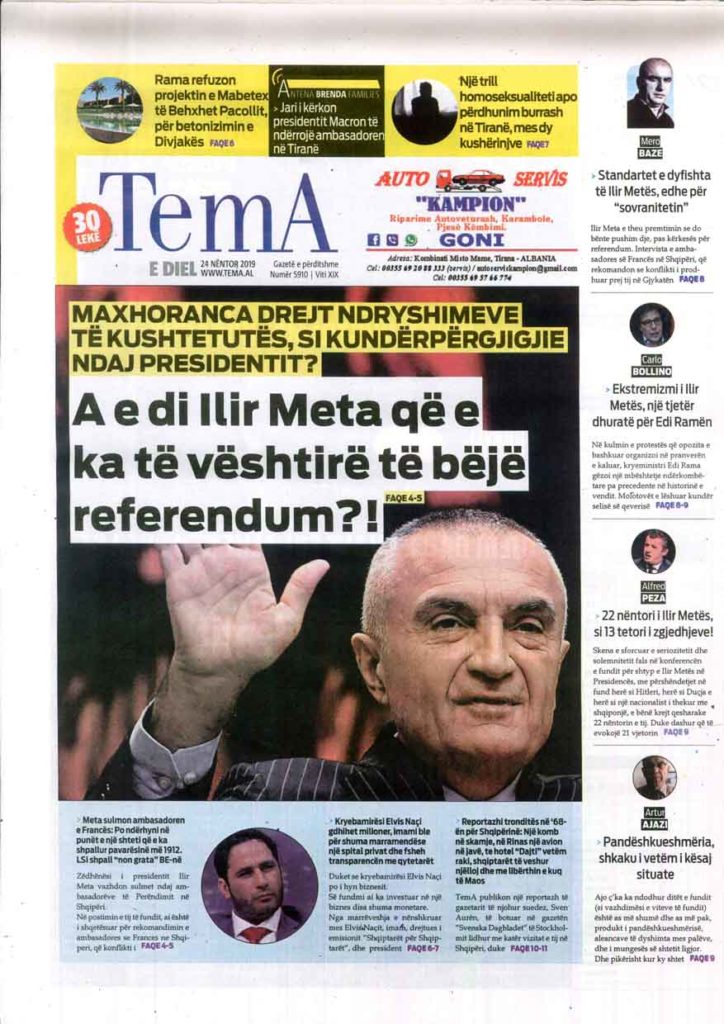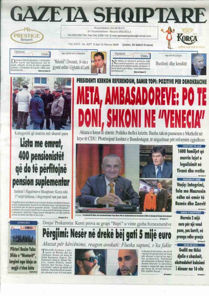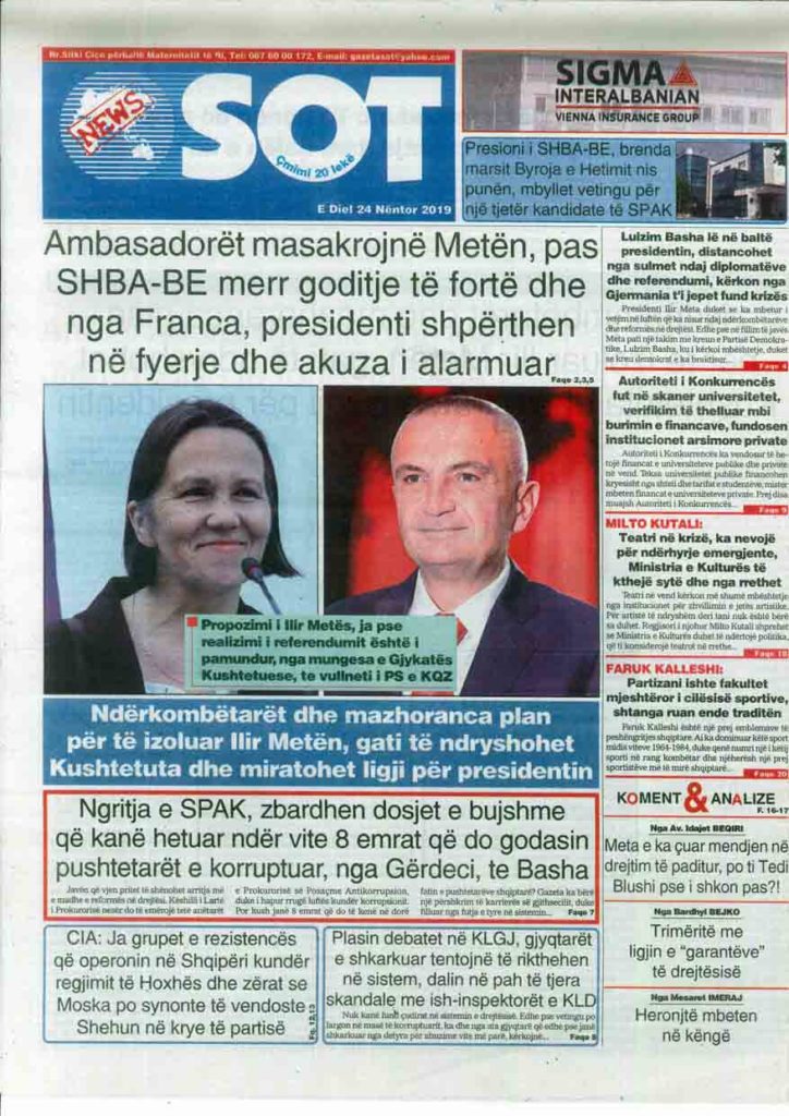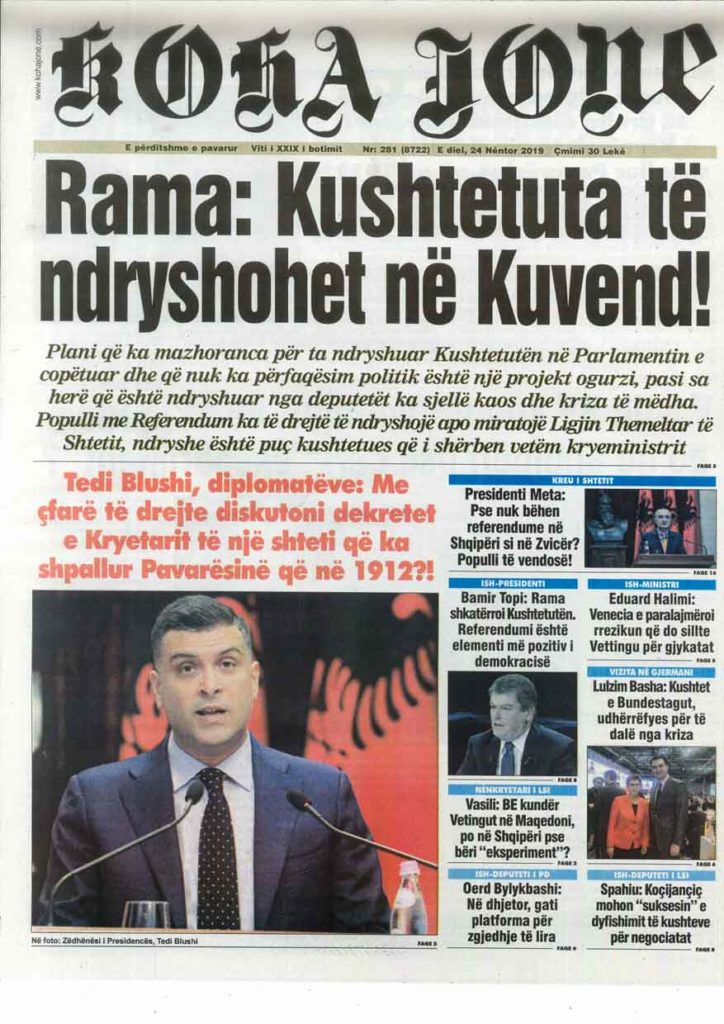 Shtypi i ditës, e diel 24 nëntor 2019
