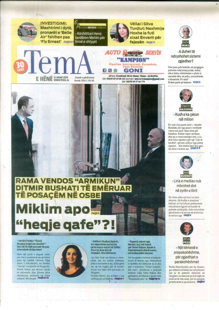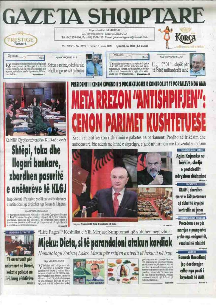 Shtypi i ditës, e hënë 13 janar 2020
